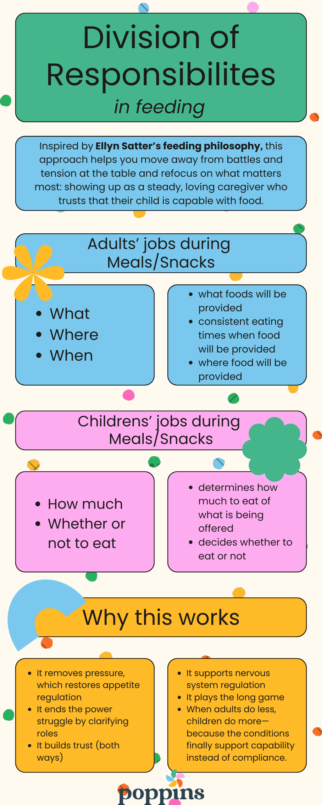 "True independence cannot be pushed from the outside; it must emerge from within," explains Raelee Peirce, Poppins Parent Coach. "When we try to control what and how much a child eats, we interfere with their natural development of autonomy. The child who is allowed to make choices at the table, even small ones, is building the internal compass they'll need for healthy eating throughout life."